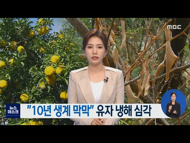◀ANC▶국내 대부분의 유자 생산을 책임지는 고흥 유자 농가들이 요즘 울상입니다. 지난 1월 한파가 개화 시기에 영향을 미쳤기 때문인데농민들은 피해 보상을 기대해 보지만이마저도 막막한 실정입니다.조희원 기자입니다. ◀VCR▶대한민국 유자 일번지 (전남) 고흥군, 국내 유자의 60%가 출하되고 있습니다. 개화 시기...