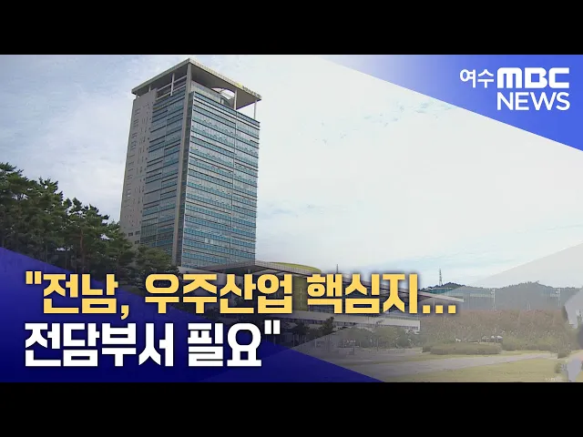 전라남도에 우주항공산업 전담부서 신설이 필요하다는 목소리가 나왔습니다.송형곤 전남도의원은전남도가 국가 우주산업 클러스터의 핵심 거점임에도,관련 업무를 전담하는 부서가 없고,1개 팀, 4명이 수조 원 규모의 프로젝트를 담당하고 있다고 지적했습니다.이어 경상남도는 5개 팀, 대전시도 3개 팀을 운영하고 있다며...