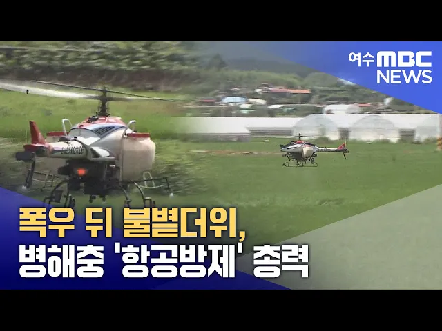 ◀ 앵 커 ▶세찬 비가 그치고 다시불볕더위가 이어지고 있습니다.젖은 농작물이 강한 햇볕을 쬐면벼멸구 등 병해충이 들끓을 수 있는데요.지자체와 농가는 폭우로 미뤘던 방제 작업에 한창입니다.◀ 리포트 ▶무인 헬기가 프로펠러를 돌리며 힘차게 날아오릅니다.논 위를 지나자 물결치듯 벼가 일렁입니다.병해충 예방약을 벼 ...