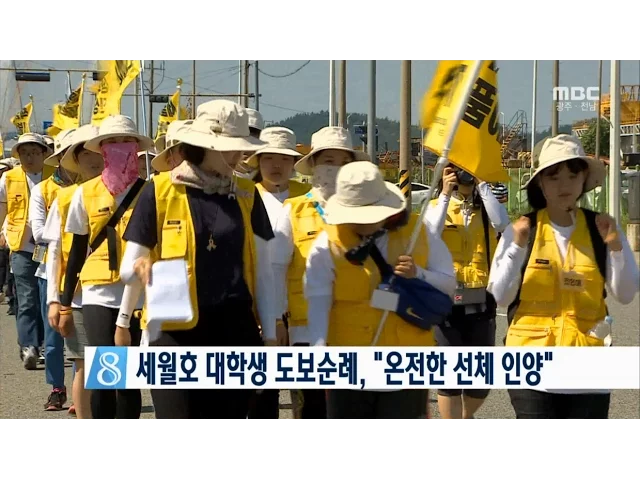 오는 26일 세월호 선수들기 작업이재개되는 가운데, 4.16 대학생 연대와 세월호 유가족들이 도보순례를 시작했습니다.전국에서 모인 130여 명의 대학생 등 세월호 도보순례단은 목포신항에서 진도 팽목항까지 64.1킬로미터 거리를 오늘부터 나흘동안 걸으며미수습자 수습과 온전한 선체인양, 진상규명등을 촉구할 계획입니...
