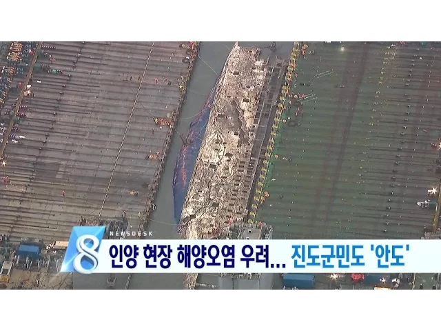 세월호 선체 인양이 진행되면서주변 바다 오염에 대한 우려도 적지 않습니다.숨죽여 지켜보고있는 진도주민들도 안도감 속에 후유증이 없기를 바라는 분위기입니다. ///////////////////////////////////////불법 리베이트 사건에 연루된 혐의로총경급 경찰관이 검찰에 체포됐습니다.경찰 조사에서는 무혐의 처분을 받았지...