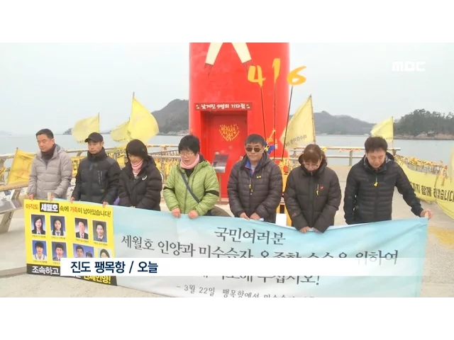 ◀ANC▶ 세월호 시험 인양이 이뤄지면서,진도 팽목항에도 종일 애타는 긴장감이 흘렀습니다. 미수습자 가족들은 애끊는 심정을 국민들 앞에 호소했고, 팽목항을 찾은 시민들의 마음도 똑같았습니다.양현승 기자입니다. ◀END▶ ◀VCR▶ 2014년 4월 16일에서 1072일이 지난진도 팽목항. ...