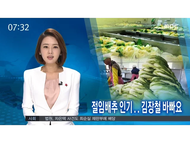 ◀ANC▶ 전국 최대의 배추 산지인 해남군에서 생산되는 절임배추가 요즘 특수를 누리고 있습니다. 김장철이 일찍 시작되면서 하루 주문량만 70톤에 달해, 택배가 지연될 정도라고 합니다. 신광하 기자가 보도합니다. ◀VCR▶ 갓 수확한 배추를 반으로 갈라 소금에 절입니다. 농도가 다른 소금물에 배...