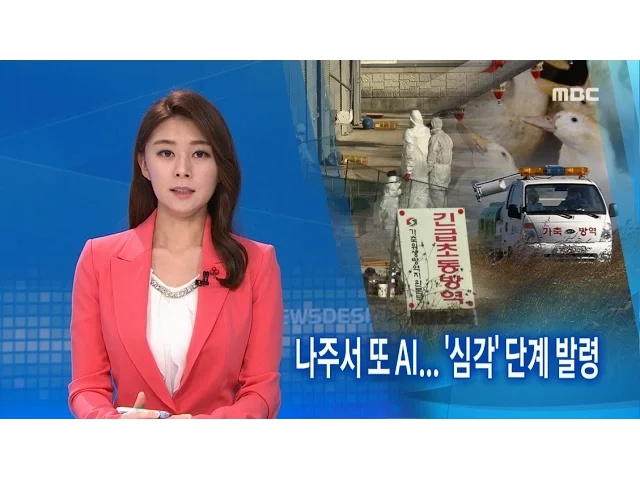 (앵커)국내 최대 오리 산지인 나주에서또 다시 AI가 발생해농장간 수평감염 우려가 확산되고 있습니다. 정부는 AI 위기 경보를최고 수준인 '심각' 단계로 격상했습니다. 정용욱 기자입니다 (기자)1만 7천마리를 사육 중인나주의 한 육용오리 농장에서예방적 살처분이 이뤄집니다. 간이검사 결과 H5형 AI 바이러스가 검출됐...