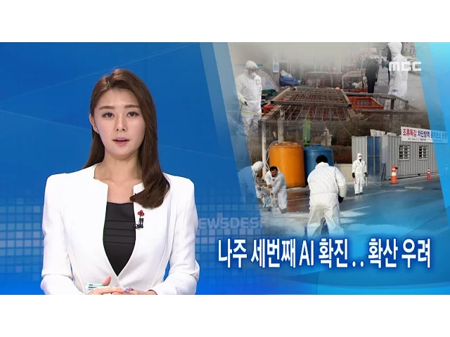 (앵커)국내 최대 오리 산지인 나주에서세번 째로 고병원성 AI확진 판정이 나왔습니다.농장간 수평 전염 여부를 확인하기 위해방역당국이 긴급 역학조사에 나섰습니다.이계상 기자..(기자)지난 10일 진행된 간이검사에서H5형 조류 인플루엔자 바이러스가 검출돼살처분이 진행됐던나주 남평의 씨오리 농장에 대한 정밀검사 결...