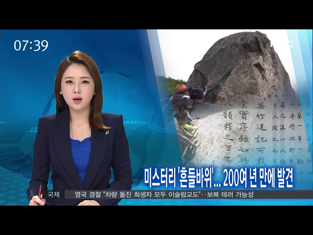 ◀ANC▶옛 문헌 속에 언급됐던 '흔들바위'가 실물로 발견됐습니다.200여년 만에 존재가 확인된 해남 두륜산의 흔들바위를 박영훈 기자가 소개합니다. ◀END▶ ◀VCR▶ 천년고찰 대흥사를 품고 있는 해남의두륜산입니다. 해발 703미터 정상으로 오르는7부 능선 길목에 둥근 암석이 눈에 ...