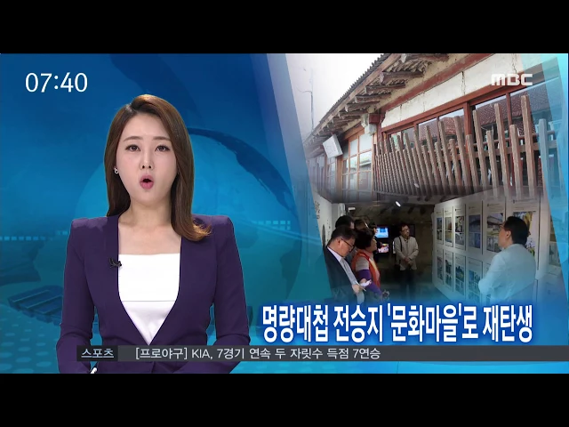 ◀ANC▶이순신 장군의 명량대첩 전승지가 420년 만에 문화마을로 재탄생했습니다.옛 풍경과 예술, 주민의 삶이 어우러져색다른 추억을 선사하고 있습니다.박영훈 기자가 취재 ◀END▶ ◀VCR▶ 성냥갑 같은 집들이 옹기종기 모여 있는 마을. 지난 추억을 담은 벽화들이 그려진 좁은 골목...