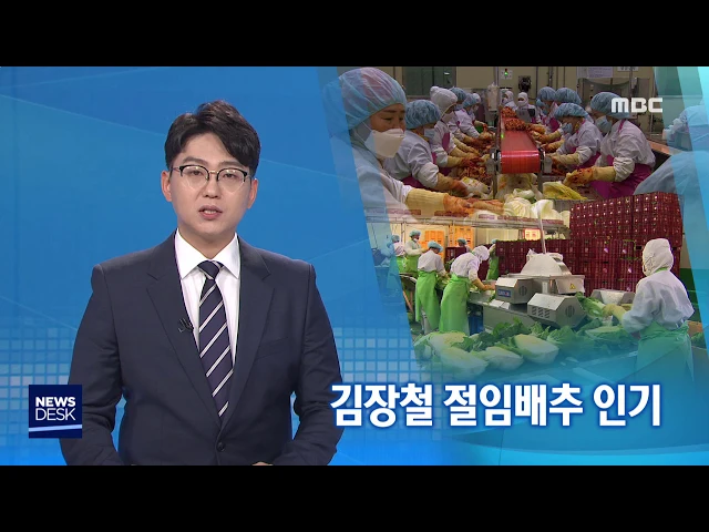 김장철을 맞아 배추 주산지인 해남 절임배추가 인기를 끌고 있습니다. 지역 농협은 물론 대규모 배추 재배 농가들도 절임 배추를 생산하느라 분주한 나날을 보내고 있습니다. 신광하 기자가 현장 취재했습니다. ◀VCR▶ 밭에서 갓 수확한 싱싱한 배추를 컨베이어 벨트에 실어 자동으로 손질합니다. 신안산 천일...