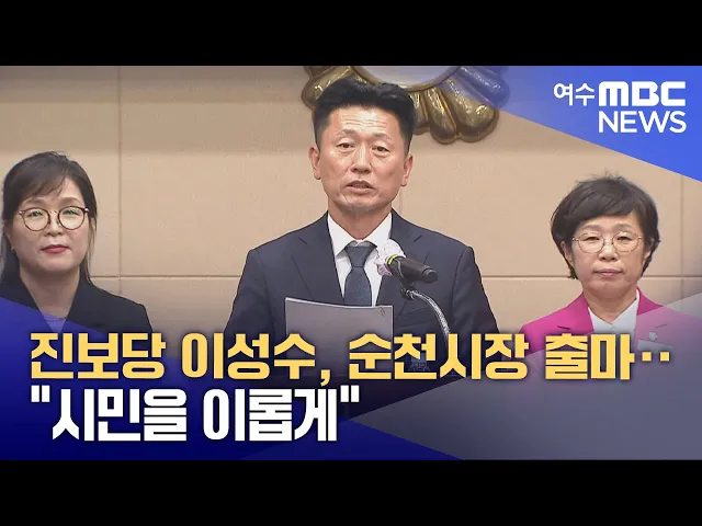 이성수 진보당 전남도당위원장이내년 6·3 지방선거 순천시장에 출마합니다.이 위원장은 오늘(1) 순천시의회에서 기자회견을 열고'상상 그 이상의 순천, 시민을 이롭게'를 구호로순천시장 출마를 선언했습니다.이 위원장은 순천시정은 소수 기득권의 이익이 아니라시민 모두에게 이익이 돼야 한다며,시민 살림살이에 보탬이 ...