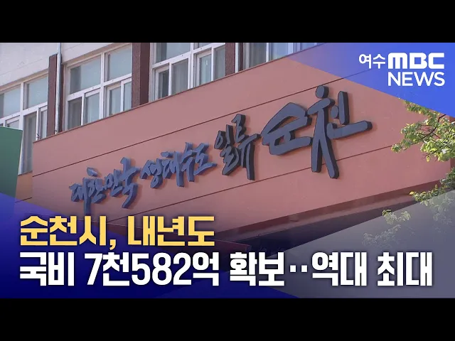 순천시가 내년도 국비 7천582억 원을 확보해역대 최대 규모를 달성했습니다.이는 올해보다 560억 원, 8% 증가한 것으로 주요 신규 사업으로는K-디즈니 인재 양성 거점기관과강소형 스마트시티 조성,순천만 일원 기후대응 도시숲 조성 등입니다.특히, 교통 인프라 분야에서경전선 전철화 사업비가 1천722억 원으로 대폭 증액...