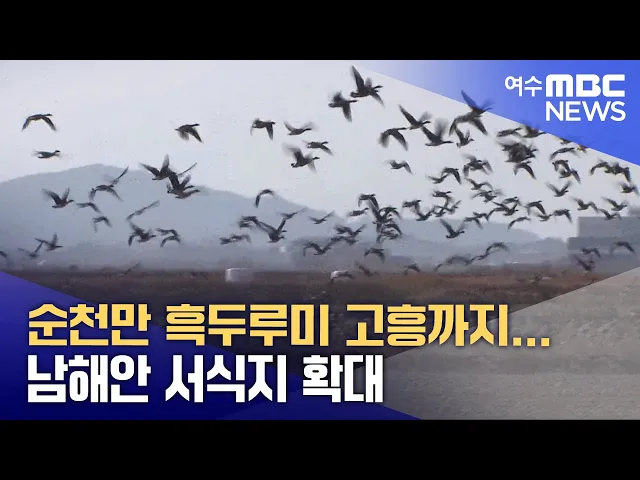 ◀ 앵 커 ▶올해 순천만을 찾은 흑두루미 수가역대 최다를 기록하면서서식지도 점차 확대되고 있습니다.흑두루미 월동지로 알려진 순천만과 인접한고흥에서도 수백 마리의 흑두루미가 관찰됐습니다.김단비 기자입니다.◀ 리포트 ▶무리 지은 새들이 논바닥에 남아있는 낟알을연신 쪼아 먹습니다.자세히 보니 붉은 정수리에 흰 ...