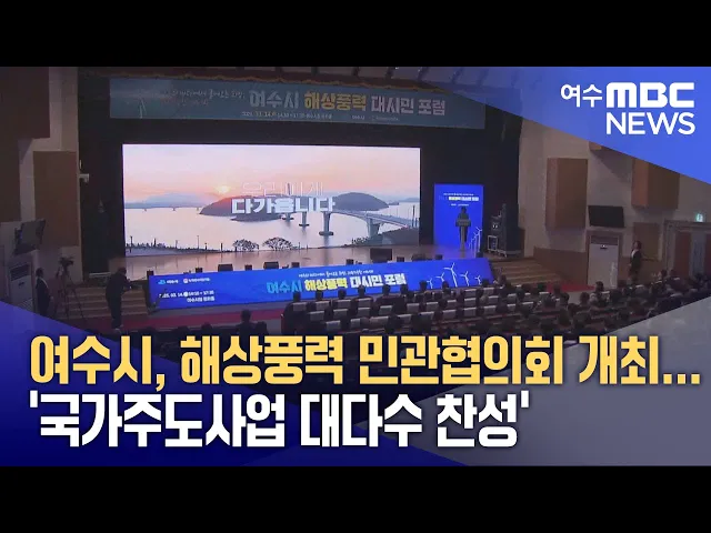 여수시가 추진하는공공주도 해상풍력 사업이국가주도로 이뤄지는데 대해대다수가 찬성하는 것으로 나타났습니다.여수시는 최근, 해상풍력 민관협의회를 개최해특별법에 따른 국가주도 해상풍력 사업 추진에 대한 의견을 수렴했으며,정부위원과 민간위원 등 25명의 위원들은공공주도 사업 방향에 대해 찬성했고대상지 발굴과...