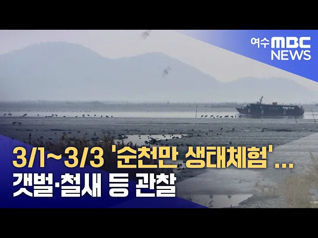 본격적인 봄을 앞두고순천만 일원에서 생태체험 프로그램이 진행됩니다.사단법인 순천만생태관광협의회는 다음 달 1일부터 사흘 동안 생태 체험선을 타고 수로를 탐방하며갯벌과 갈대군락, 철새들의 모습을관찰할 수 있는 프로그램을 진행한다고 밝혔습니다.참가 인원은 하루 28명으로 제한되며,순천만습지 및 순천만생태관...