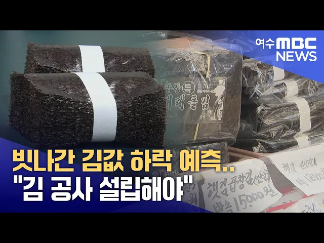 ◀ 앵 커 ▶물김 가격 폭락분이 시장에 반영되기 시작했지만, 소비자들이 느끼는 김값은 여전히 고공세를 유지하고 있습니다.김값을 잡기 위해 칼을 빼들었다던 해양수산부의 대책들에도 실효성 문제가 제기되고 있습니다.서일영 기자가 취재했습니다.◀ 리포트 ▶2025년산 김이 시장에 본격 공급되는 2월 말.앞서 해양수산부는...