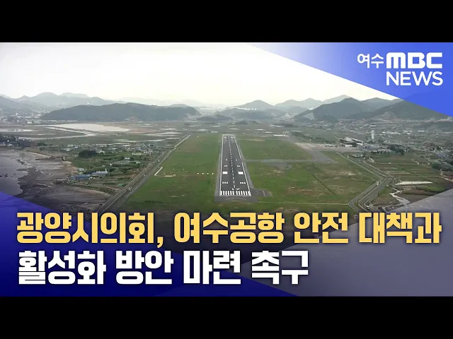 광양시의회가 여수공항 안전 대책 마련과 함께활성화 방안 마련을 촉구했습니다.광양시의회는 제335회 임시회에서 성명을 발표하고 연간 5천만명의 관광객이 찾는 동부권의 관문인여수공항의 콘크리트 둔덕 로컬라이저를 즉각 철거하고 항공기 활주로 이탈 방지와 강제 제동장치를 조속히 설치할 것을 촉구했습니다.이와 함...