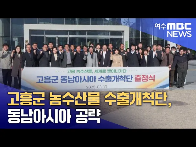 고흥군이 농수산물 수출개척단을 구성하고인도네시아와 태국, 베트남을 방문합니다.공영민 군수를 단장으로 한동남아 수출개척단은 오늘(20) 인도네시아 식품가공 기업과500만 달러 규모 수출 협약을 체결했으며오는 25일까지총 1천만 달러 규모의 협약을 체결할 예정입니다.고흥군은 또, 최근 어려움을 겪고 있는김 생산 ...
