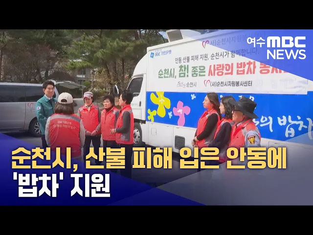 순천지역 자원봉사자들이대규모 산불 피해 지역인 경북 안동을 찾아봉사 활동에 들어갔습니다.순천시 자원봉사센터는 오늘(28) 오후산불 피해를 입은 경북 안동에 사랑의 밥차와 직원, 자원봉사자 등 9명을 파견했습니다.사랑의 밥차는 오는 30일까지 피해 주민과 소방인력 등 4백여 명에게 식사를 제공할 계획입니다.