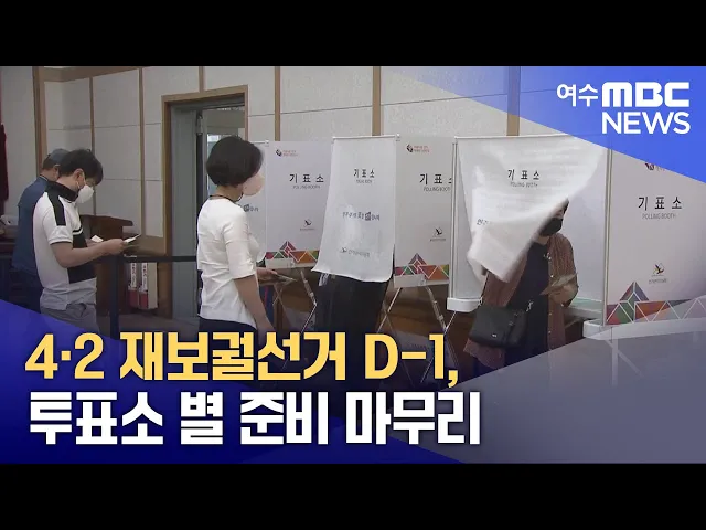 4·2 재보궐선거를 위한 전남동부권 두 곳의 선거구에서도 투표소 준비가 순조롭게 모두 마무리 됐습니다.전라남도 선거관리위원회에 따르면 4·2 재보궐선거가 하루 앞으로 다가온 가운데 광양시 다 선거구와 고흥군 나 선거구에각각 6개소 씩 12개소의 투표소 별로 순조롭게 준비를 모두 마치고 내일(2) 오전 6시부터 오후 ...