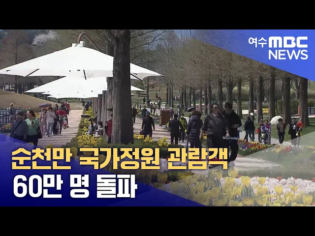 올해 순천만 국가정원 관람객이60만 명을 돌파했습니다.순천시는 올해 개장 90일 만에 국가정원 관람객이 60만 명을 기록했으며, 이는 지난 2022년과 비교해 29일 앞당겨진 것이라고 밝혔습니다.순천시는 정원에 문화 콘텐츠를 결합하고 SNS를 통한 홍보를 강화해 청년층과 외국인 관광객 유입을늘려나가겠다고 덧붙였습니...
