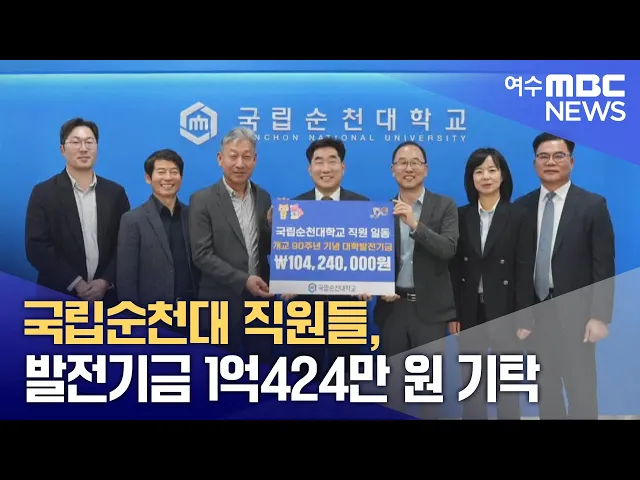 국립순천대학교 직원들이 개교 90주년을 맞아발전기금 총 1억424만 원을 기탁했습니다.이번 기탁은 전 부서 직원의자발적인 참여로 이뤄졌으며,대학의 지속 가능한 발전과 미래 인재 양성을 위해 마련됐습니다.국립순천대는 개교 90주년을 기념해90만 원 이상을 기탁하면,대학 70주년기념관에 있는 우석홀 좌석마다이름을 ...
