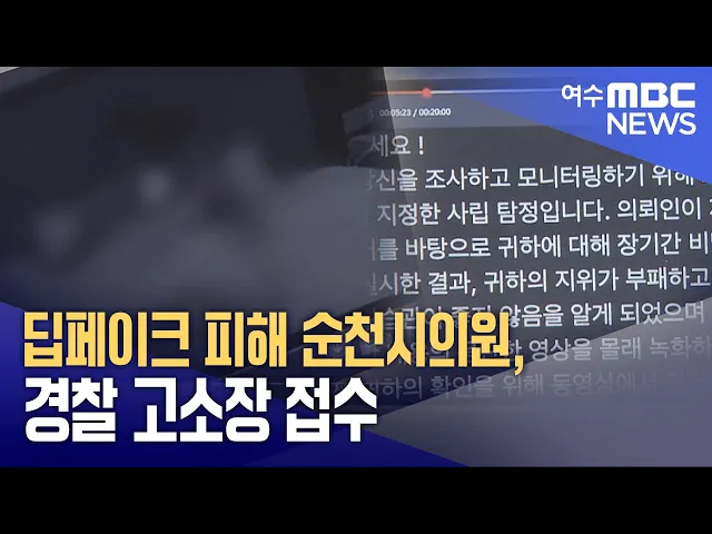 순천시의원을 대상으로 한딥페이크 불법 합성물 협박 사건을 두고경찰이 수사에 나섰습니다.정광현 순천시의원 등 관련 피해 의원 6명은 오늘(16) 딥페이크 협박 메일에 대해디지털 성범죄, 협박죄 등으로순천경찰서에 고소장을 제출했습니다.정 의원 등은 지난 7일 나체 여성과 함께 있는 불법 합성 사진과1억 5천만 원 상...