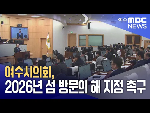 내년도 여수세계섬박람회를 앞두고여수시의회가 2026년을 '섬 방문의 해'로 지정할 것을 촉구했습니다.오늘(16) 제245회 여수시의회 임시회에서 여수시의원 20명은,김영규 의원이 발의한 해당 건의안을 채택하고, 정부가 과거 한국 방문의 해를 지정해 국가 브랜드를 높인 것처럼내년을 섬 방문의 해로 지정해섬 박람회를 ...