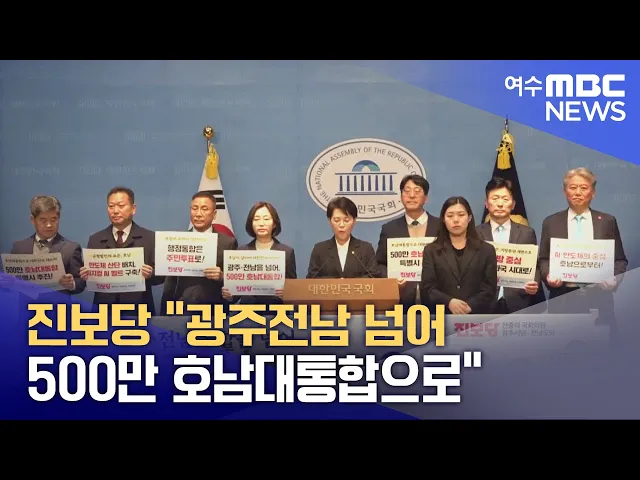 진보당 김재연 대표와 전종덕 의원,호남지역 지방선거 후보들이국회에서 기자회견을 열고"광주전남 통합을 넘어500만 호남대통합을 하자"고 주장했습니다.참석자들은 "역사적, 문화적, 정서적으로 공통의 정체성을 가진 정치경제 공동 운명체로서 500만 호남대통합을 실현해야호남번영 시대를 열 수 있다"며이같이 촉구했습...