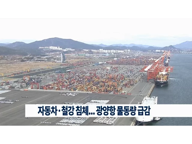 철강, 자동차 산업의 침체 여파로 광양항의 물동량이 큰 폭으로 줄어들고 있습니다.해양수산부가 공개한 전국 항만물동량에 따르면광양항의 지난 2월 물동량은 1758억톤으로전년 같은 기간에 비해 14.2%가 줄어들었습니다.이는 컨테이너 물동량은 4%포인트 정도 소폭 늘어난 반면자동차 수출이 27% 포인트,철재수출입이 90%...