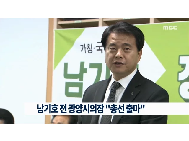 남기호 전 광양시의회 의장이 20대 총선 출마를 공식 선언했습니다.남 전 의장은 오늘 기자회견을 갖고 "새로운 대안정치와 민생정치, 생활정치의 시대를 열어국민의 삶의 질을 높이고 국가의 안보와 안전을 도모하는 새로운 정치를 추구하겠다"며 출마 의지를 공식화 했습니다.남 전 의장은 그러면서 "정치를 바꾸라는 국...