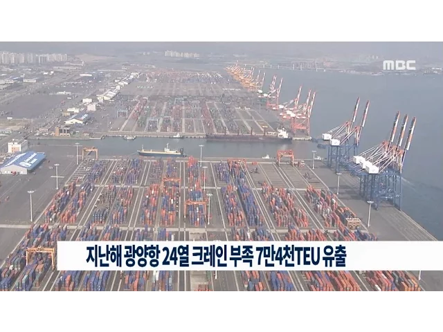 지난 해 광양항에 24열 대형 컨테이너 크레인의 부족으로모두 7만4000TEU의 물동량이 유출된 것으로 분석됐습니다. 광양상공회의소가 전남대산학협력단에 의뢰한 '광양항 물동량 창출 위한 정부지원방안 연구 용역' 결과 지난 해 24열 컨테이너 크레인 부족으로 7만4000TEU의 물동량이 유출된 것으로 조사됐습니다. 특히, ...