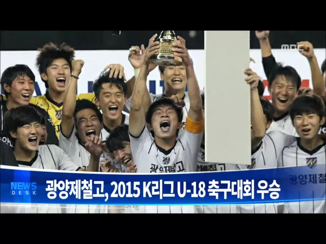프로축구 전남드래곤즈의 18세 이하 팀인 광양제철고가 어제(10) 포항에서 열린 '2015 K리그 18세 이하 챔피언십' 결승전에서 울산 현대고를 2대1로 꺾고 정상에 올랐습니다.한편 이번 대회에서광양제철고의 최익진이 최우수선수에 뽑혔고, 광양제철고를 우승으로 이끈 김현수 감독은 최우수 감독상을 차지했습니다.