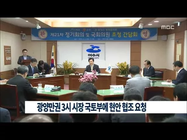 광양만권 3시 시장이 국토교통부를 방문해 최근 공동 건의한 지역의 4개 현안을 설명하고 적극적인 협조를 요청했습니다.여수와 순천, 광양시 광역행정협의회는 지역구 국회의원들과 함께 국토교통부를 방문해 최근 공동 건의한 전라선 고속철도 사업과 이순신대교 국가 관리, 여수공항 부정기 국제선 운항 허가, 동서통합...