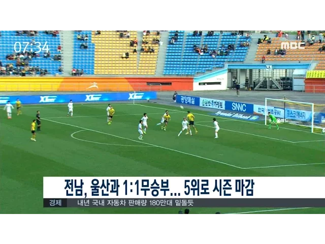 프로축구 전남드래곤즈가 울산 현대를 상대로 펼친올 시즌 마지막 경기에서 무승부를 기록했습니다. 오늘(6) 순천에서 열린K리그 클래식 38라운드 경기에서 전남은 전반 22분, 울산에 자책골을 내줬지만후반 35분 자일이 동점골을 성공시키면서결국 1:1 무승부로 경기를 마쳤습니다. 올해 처음으로 상위 스플릿 진출에 성...