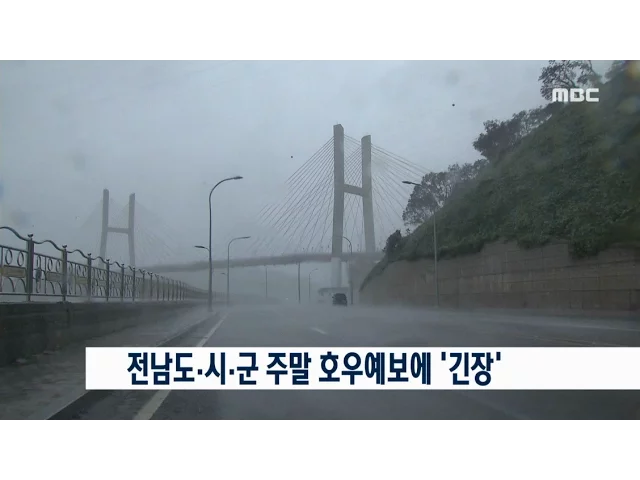 태풍 '차바'에 이어 이번 주말 또다시 많은 비가 예보돼 당국이 긴장하고 있습니다.전남도는 오늘 오전 각 시군 담당자와긴급 영상회의를 갖고 재해취약지역 예찰강화를 주문했으며 시군 재난담당 직원들도 호우에 대비한비상근무에 들어갔습니다. 당국은 특히 이번 태풍으로 농작물의 피해가 집중됐던 만큼 벼농사와 과수...