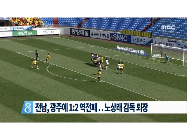 프로축구 전남드래곤즈가 광주FC에 역전패를 당하며승점 확보에 실패했습니다.오늘(17) 경기에서 전남은전반 12분 선제골을 성공시키며경기를 이끌었지만,전반 16분과 후반 38분 잇따라 골을 허용해결국 광주에 1:2로 승기를 내줬습니다. 역전패를 당한 전남은승점 3점으로 시즌 11위에 머물렀습니다. 한편, 전남의 노상래 ...