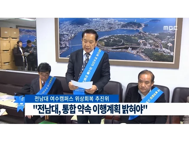 전남대와 구 여수대 통합 당시 약속이지켜지지 않은 것과 관련해시민단체가 전남대와 정부에대책 마련 등을 촉구하고 나섰습니다.전남대 여수캠퍼스 위상회복 추진위원회는오늘(22) 여수시청에서 기자회견을 열고통합 10년이 지난 지금까지 통합 양해각서가 지켜지지 않은 이유와 앞으로의 이행 계획을 밝히고,통합지원금 2...