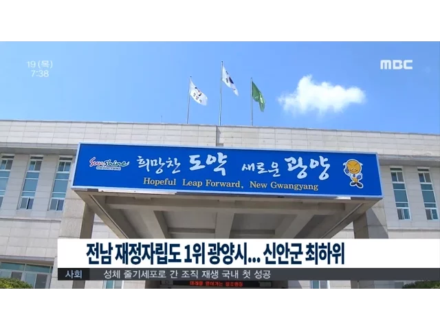 지난해 전남 전체 재정자립도가27%로 나타났습니다.행정자치부에 따르면도내 22개 시군가운데 재정자립도가 가장 높은 곳은 광양시로 36.23%를 기록했고 가장 낮은 곳은 신안군으로 9.01%에그쳤습니다. 지방교부세와 보전금을 포함한 재정자주도는광양시가 70.74%로 1위를 기록했고진도군이 55.96%으로 가장 낮았습니다.