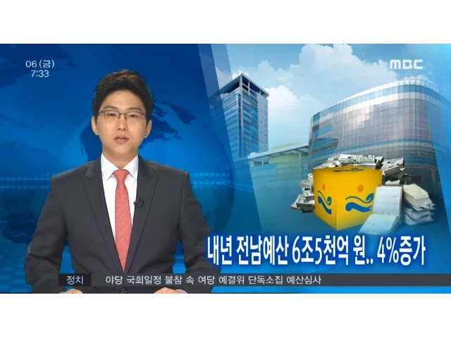 ◀ANC▶ 전라남도가 내년 예산안으로6조5천3백억여 원을 편성했습니다. 올해보다 4%가 늘었고 건강복지와 지역개발분야에 예산을 늘렸습니다.최진수 기자가 보도합니다. ◀END▶ ◀VCR▶ 내년 예산안은 올해 6조 2천8백억여 원보다2천5백억 원 가까이 늘어난 규모입니다.C/G]일자리 만...