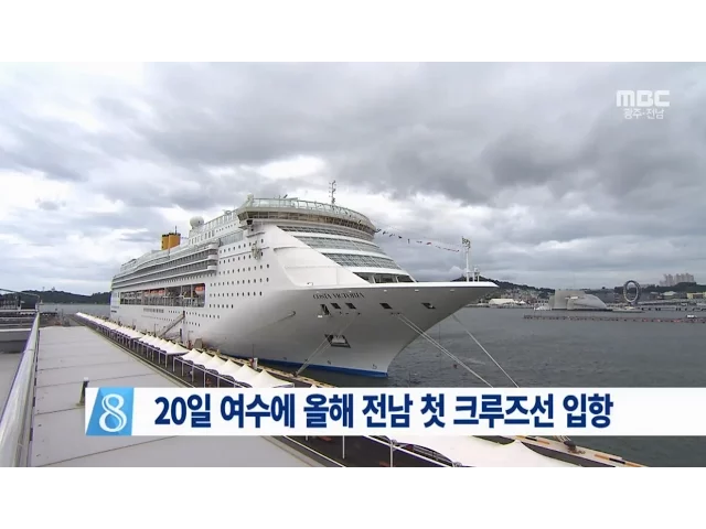 전라남도와 한국관광공사는 내일(20일) 전남지역에선 올 들어 처음으로 국제 크루즈선 ‘중화태산호’가 900여명을 태우고 여수항에 입항한다고 18일 밝혔습니다. 최초 중국 자본 크루즈선사인보하이크루즈 소유의 2만 5천 톤급, 정원 천 4백쉰 명인 중화태산호가입항을 앞두고 전라남도 등은 취타대와 케이팝, 진도개 공연 ...