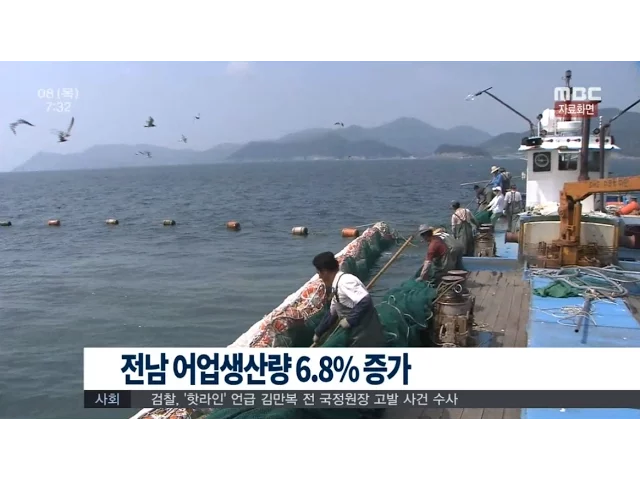 지난달 전남지역의 어업생산량이 천해양식업의 증가에 힘입어 다소 늘어난 것으로 나타났습니다.호방지방통계청은 지난달 중 전남지역의 어업생산량은 5만9천여 톤으로 지난해 같은 달에 비해 6.8% 늘었으며, 이 가운데 천해양식어업이 20% 이상 증가했으나 일반해면어업은 30% 넘게 큰 폭으로 감소했다고 밝혔습니다.지난...
