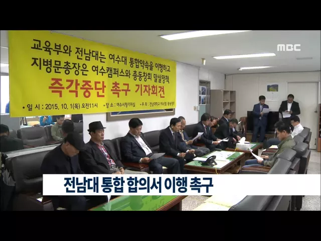 전남대학교 여수캠퍼스 총동창회가전남대 통합 당시 약속했던합의서를 제대로 이행하라고 촉구했습니다.전남대 여수캠퍼스 총동창회는오늘 여수시청 브리핑룸에서 기자회견을 갖고전남대 통합 10년이 경과된 시점에서통합 당시 약속했던한의대와 전문병원 설립이제대로 지켜지지 않고 있다며조속한 예산 확보를 통해약속을...