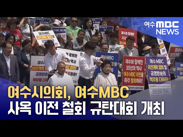 여수시의회가 여수mbc 사옥 이전 철회와이전 공론화를 요구하고 나섰습니다.여수시의회와 시민단체 백여명은 오늘,의회 현관 앞에서 규탄대회를 열고지역의 역사와 자존심을 함께해 온 여수mbc 이전은 있을 수 없다며강하게 반발했습니다.이어 백인숙 의장 등의회 의원 2명이 삭발식을 갖고지금이라도 여수mbc가 공론화 협...