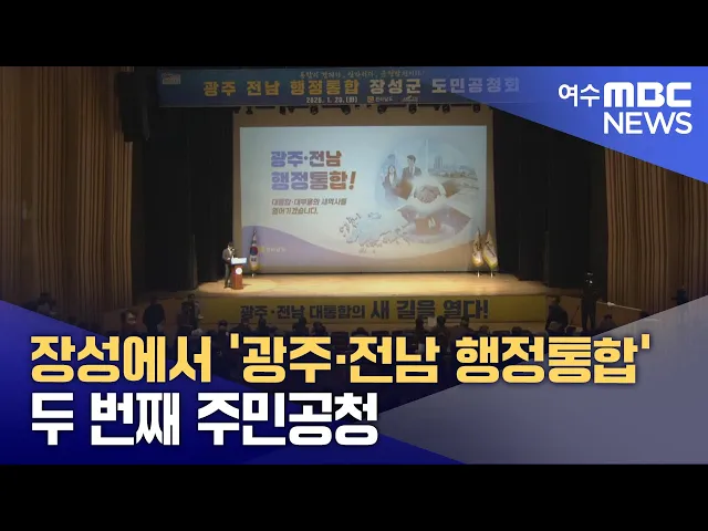오늘(20) 장성에서광주·전남 행정통합에 대한 두 번째도민 공청회가 열렸습니다.오늘(20) 열린 공청회에서는김영록 지사와 김대중 교육감이 참석해행정통합의 추진 배경과 필요성,주요 특례 사항, 교육통합 추진 방향에 대해설명했습니다.한편, 이 자리에서 지역 주민들은그동안 추진해온 사업의 차질이나 시설 이전을우려하는 한편 소규모 학교를유지할 수 있도록 하는 방안도 마련해야 한다고 요구했습니다.