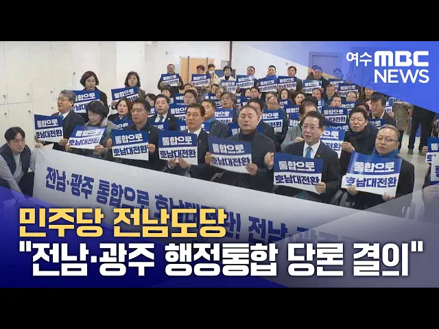 더불어민주당 전남도당은 내일(12일)제2차 상무위원회의를 열고'전남·광주 통합 추진'에 대한 당론 의결에나섭니다.전남도당은 전남·광주 통합을 인구 감소와 산업 정체라는 구조적 위기를 돌파하기 위한 '호남 대전환의 전략적 선택'으로 규정하고통합추진에 대한 공식 당 입장을 확정할계획입니다.상무위원회의 직후에는'전남·광주 통합 결의대회'를 열어통합 추진의 필요성과 원칙을 공식적으로 밝힐 예정입니다.