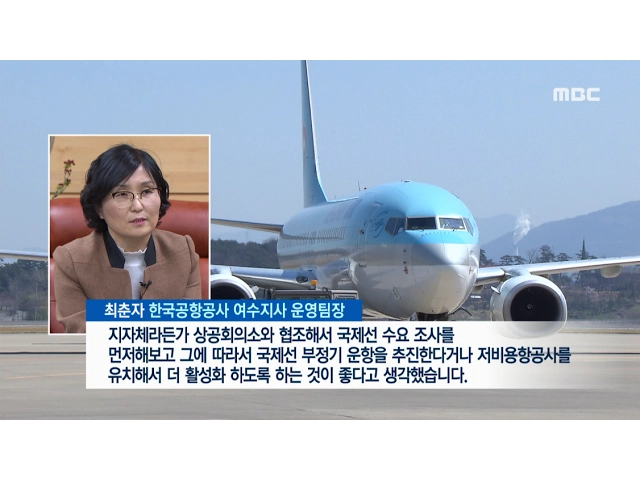◀ANC▶KTX 개통과 함께 여객 수요 감소로 고전하던 여수공항이 지난 해 운임 할인과 노선 증편 등 자구 노력으로 반등 포인트를 잡았습니다.올해는 저비용항공사와 부정기 국제선 유치 등 더욱 공격적인 활성화 사업이 추진됩니다.김주희 기자가 보도합니다. ◀END▶ ◀VCR▶///C/G] 지...