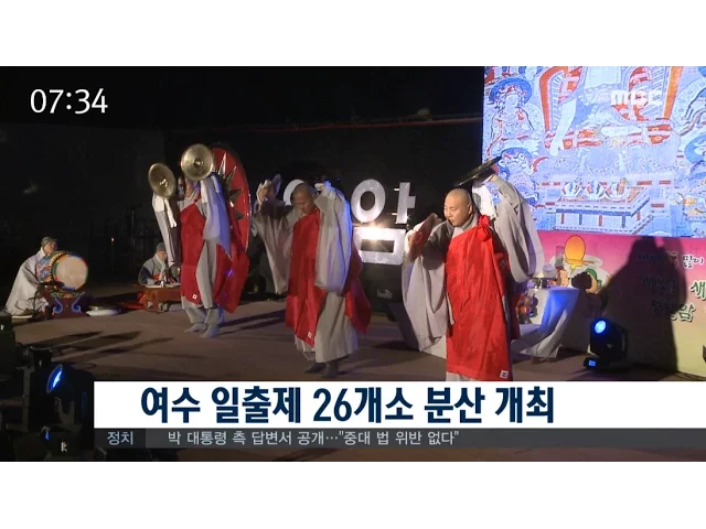 여수시가올해 향일암 일출제에해맞이객들이 크게 몰릴 것으로 예상됨에 따라일출제를 분산 개최합니다.여수시는 오는 31일과 내년 1월 1일 사이향임암과 함께무슬목과 율촌면 앵무산, 만성리 해변 등모두 26개소에서일출제를 분산 개최합니다.여수시는 해마다 향일암 일출제에 관광객들이 지나치게 많이 몰려교통혼잡이 발...
