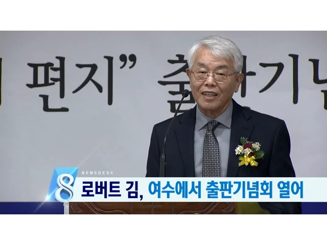 미국 해군 정보 분석가였던 로버트김이 오늘(28일) 고향인 여수의 한 교회에서출판 기념회를 가졌습니다.한국명 김채곤으로김성곤 전 국회의원의 형이기도한 로버트김은지난 1996년 주미 한국대산관 직원에게북한 관련 정보를 넘겨준 혐의로미국 연방수사국에 체포돼 징역 9년형을 선고받았습니다.로버트김은 이번 출판회에...