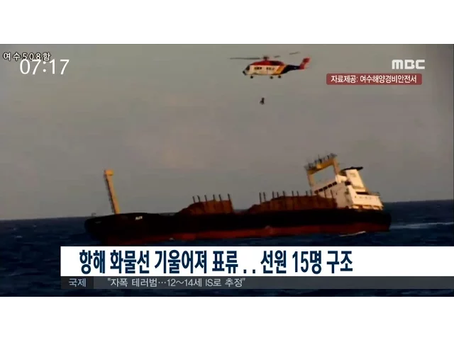 여수)항해 화물선 기울어져 선원 15명 구조