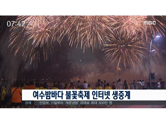 여수시가 이번주 불꽃축제로 교통혼잡이 우려됨에 따라축제를 인터넷과 모바일로도전국에 생중계하기로 했습니다.여수시는 오는 12일과 13일 밤이순신광장 앞 해상에서 열리는여수밤바다 불꽃축제에 오지 못하는 시민과 외지 관광객들을 위해인터넷 생중계는 물론불꽃쇼의 배경음악도 송출할 계획입니다.또 관람객 편의를 ...