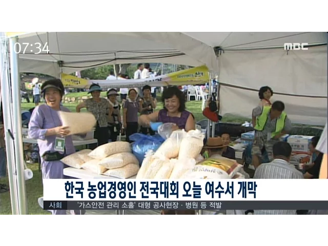 농업 경영인의 친목과 단합을 다지는제15회 한국 농업경영인 전국대회가오늘(9일) 여수 세계박람회장에서 열립니다.'한농연의 땀과 열정, 농업의 희망을 보다'란 주제로 열리는이번 농업경연인 대회는3만여 명의 회원과 가족들이 참가한 가운데2박 3일 동안 빅오쇼 관람과 각종 체험행사,노래자랑과 학술대회 등이 펼쳐질 ...